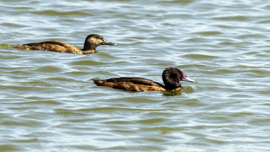 Φτάνοντας στη λίμνη, είδαμε τις πρώτες μας Upland Goose και στη συνέχεια ψάξαμε για τη Spectacled Duck, που είναι πολύ σπάνια. 0,2% frequency έδινε το eBird, και παρ’ όλα αυτά καταφέραμε να τη βρούμε και να βγάλουμε κάτι μακρινές φωτογραφίες.