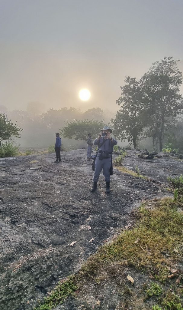 Την ώρα που έβγαινε ο ήλιος βρεθήκαμε πάνω σε ένα μεγάλο οριζόντιο βράχο, που γύρω γύρω είχε δέντρα και ήταν μαζεμένοι και άλλοι birders, σημάδι ότι η περιοχή είχε πολλά πουλιά, όπως είχαμε την ευκαιρία να διαπιστώσουμε στη συνέχεια.