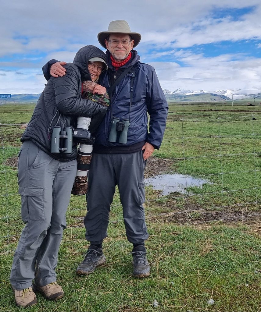 Μόλις φωτογραφίσαμε το 1500ό πουλί για φέτος και το γιορτάζουμε με μια αναμνηστική φωτο, μπροστά στα χιονισμένα βουνά του Θιβέτ.