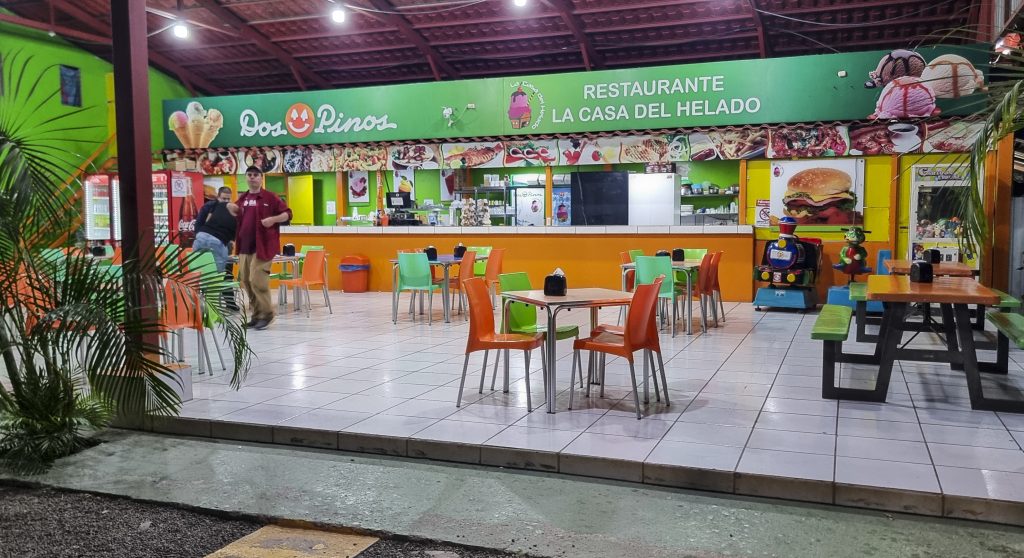 Πλησιάζοντας στο ξενοδοχείο, κάναμε μία στάση για να φάμε και γνώρισα το στυλ των εστιατορίων της Costa Rica. Είναι υπαίθρια στην ουσία, έχουν έναν πάγκο και λειτουργούν σαν κάτι μεταξύ fast food και ψητοπωλείου. Πας, παραγγέλνεις ό,τι θέλεις, στο ψήνουν επί τόπου και το τρως. Ήταν πολύ ωραίο το πρώτο μας γεύμα στην Costa Rica πριν φτάσουμε στο Hotel de Lucia.