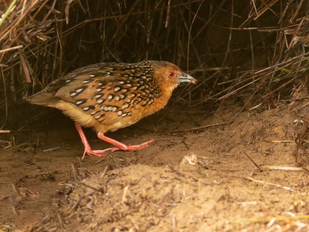 Ο βασικός μας στόχος ήταν το Ocellated Crake και η ιστορία είχε πολύ φάση. Το crake αυτό δεν βγαίνει από τα χόρτα με τίποτα. Ο οδηγός πηγαίνει σχεδόν κάθε μέρα στο σημείο, του δημιουργεί ένα τούνελ με χόρτα για να αισθάνεται προστατευμένο, του βάζει σκουλήκια και το καλεί να έρθει. Στηθήκαμε καμιά δεκαριά μέτρα μακριά και περιμέναμε.