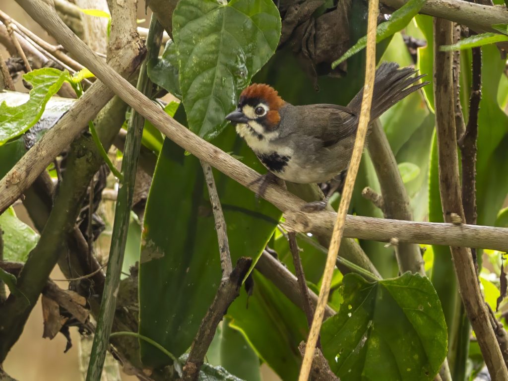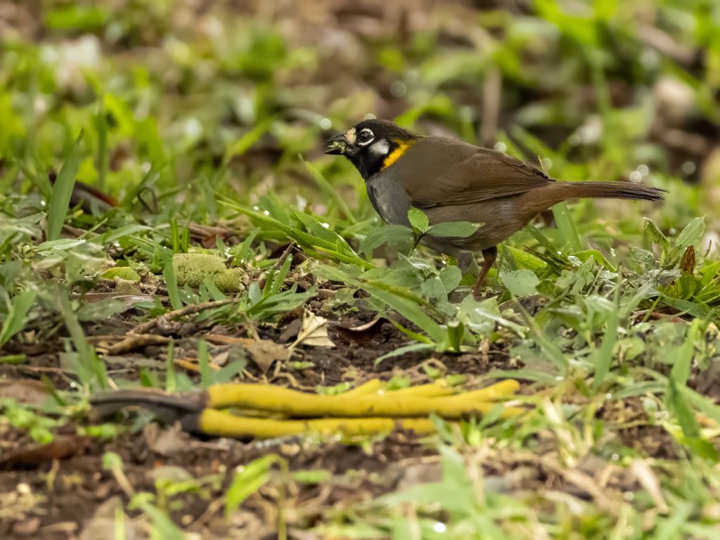 Πραγματικά ξεκινήσαμε, περάσαμε από δύο υδροβιότοπους προσθέτοντας συνεχώς είδη και κάποια στιγμή φτάσαμε στην πόλη δίπλα στο Tapantí. Και μέσα στους δρόμους της πόλης, δίπλα σε ένα πάρκο, υπάρχει το Cabaniss Ground Sparrow. Είναι το μόνο σημείο που μπορείς να βρεις αυτό το πουλί, και καταφέραμε να το δούμε και να το φωτογραφίσουμε.