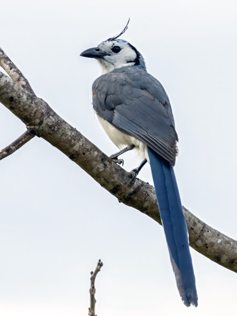 Συνεχίσαμε και εγώ ήμουν καψούρης: ήθελα να ξαναδώ το υπέροχο White-throated Magpie-Jay. Το είχαμε δει εδώ το 2012, με πολύ περιπετειώδη τρόπο μέσα στη βροχή, και ήθελα οπωσδήποτε να το ξαναδώ. Το ψάξαμε λοιπόν σε 3–4 σημεία και πραγματικά καταφέραμε να το βρούμε σε ένα δέντρο πολύ κοντά μας και να το φωτογραφίσουμε.