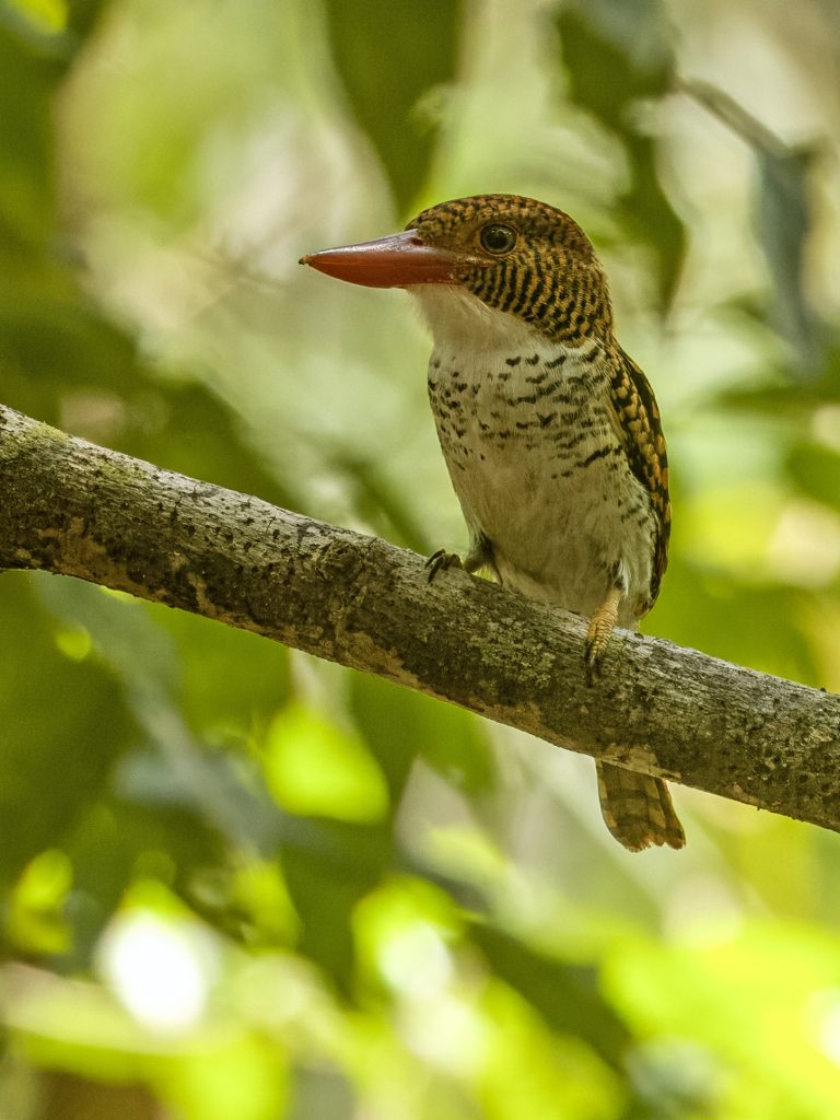 Φτάνοντας στο πιο απομακρυσμένο σημείο του δικτύου μονοπατιών, ανταμειφθήκαμε με ένα εκπληκτικό Garnet Pitta. Χρειάστηκε χρόνος για να το προσελκύσουμε πιο κοντά ώστε ο τοπικός οδηγός να το εντοπίσει να τραγουδά πάνω σε ένα δέντρο, εντελώς εκτεθειμένο — και έτσι αναδείχθηκε στο «πουλί της προέκτασης».