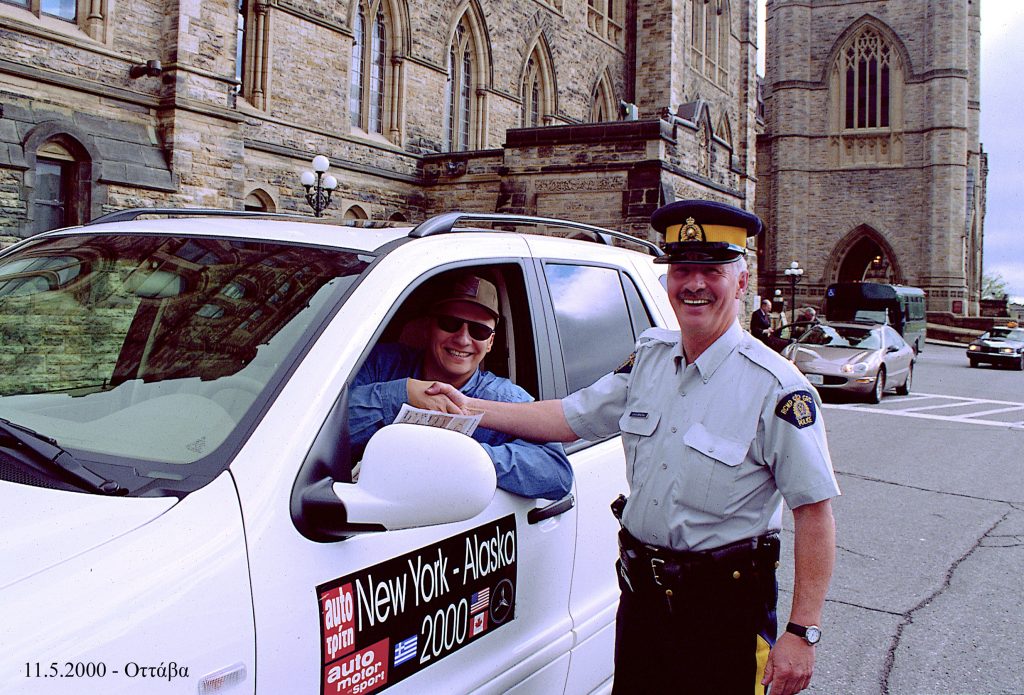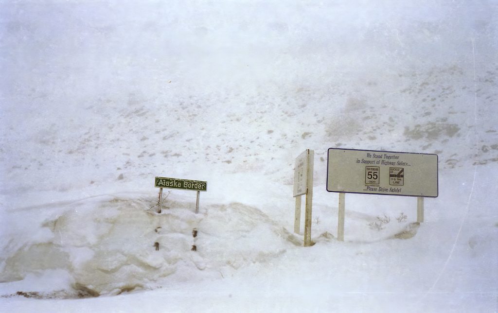 Προχωρούσαμε με 10 χλμ την ώρα, προσπαθώντας να φτάσουμε στα σύνορα. Λίγο παρακάτω σχεδόν πέσαμε πάνω σε περιπολικό της καναδικής αστυνομίας, που μας ενημέρωσε ότι ο δρόμος και ο καιρός ήταν ακόμη χειρότερα προς την Alaska.