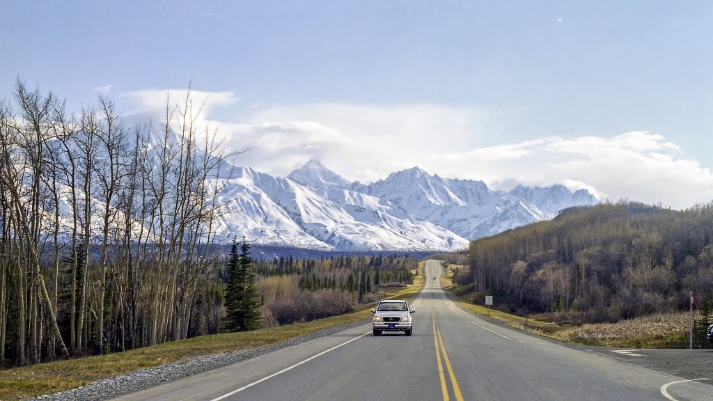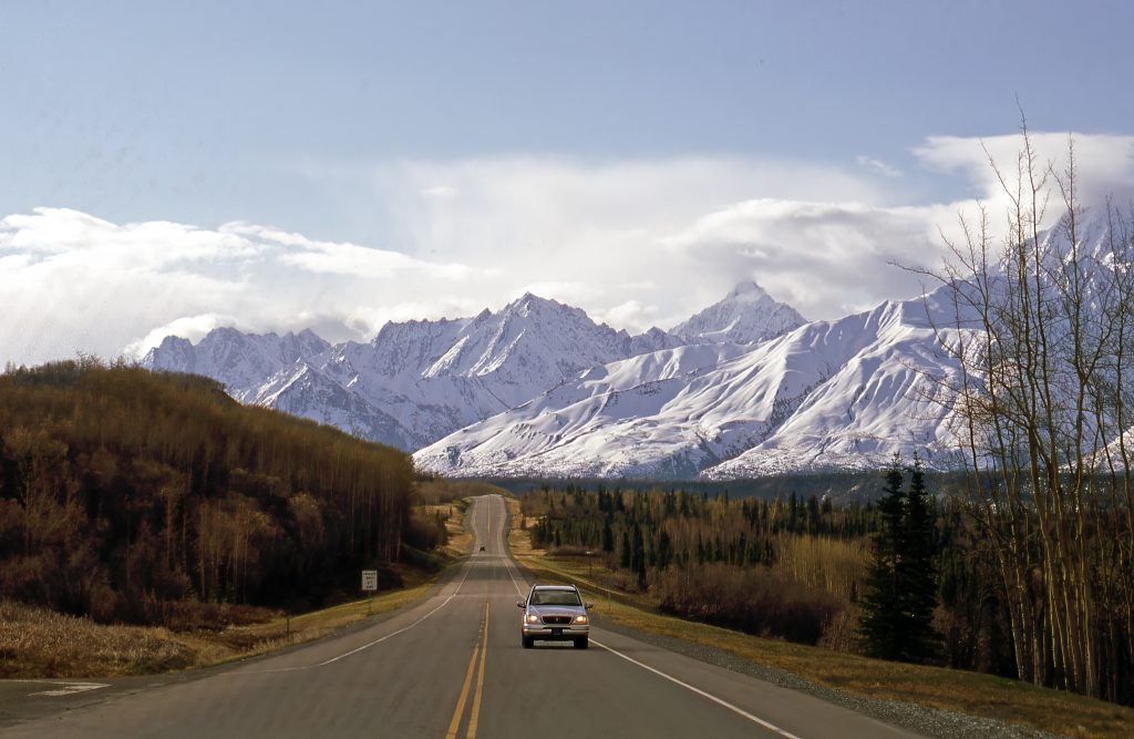 Εκατό χιλιόμετρα παρακάτω ξαναβρεθήκαμε στον Alaska Highway, που είχαμε αφήσει στο Whitehorse για να πάμε στον Αρκτικό Κύκλο και στη Dawson City. Πήραμε τον δρόμο για το Anchorage και η διαδρομή ήταν καταπληκτική, καθώς περνούσαμε δίπλα από χιονισμένα βουνά που έδιναν απίστευτο θέαμα.