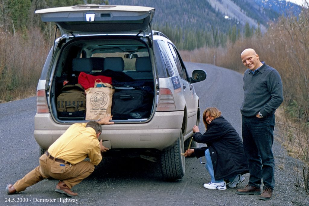 Τι να κάνουμε τώρα; Να γυρίσουμε στο Dawson City και από εκεί μέσω Whitehorse να πάμε στην Alaska; Αυτό σήμαινε περίπου 1.500 επιπλέον χιλιόμετρα. Αποφασίσαμε λοιπόν να συνεχίσουμε μέχρι τα σύνορα και βλέπουμε.