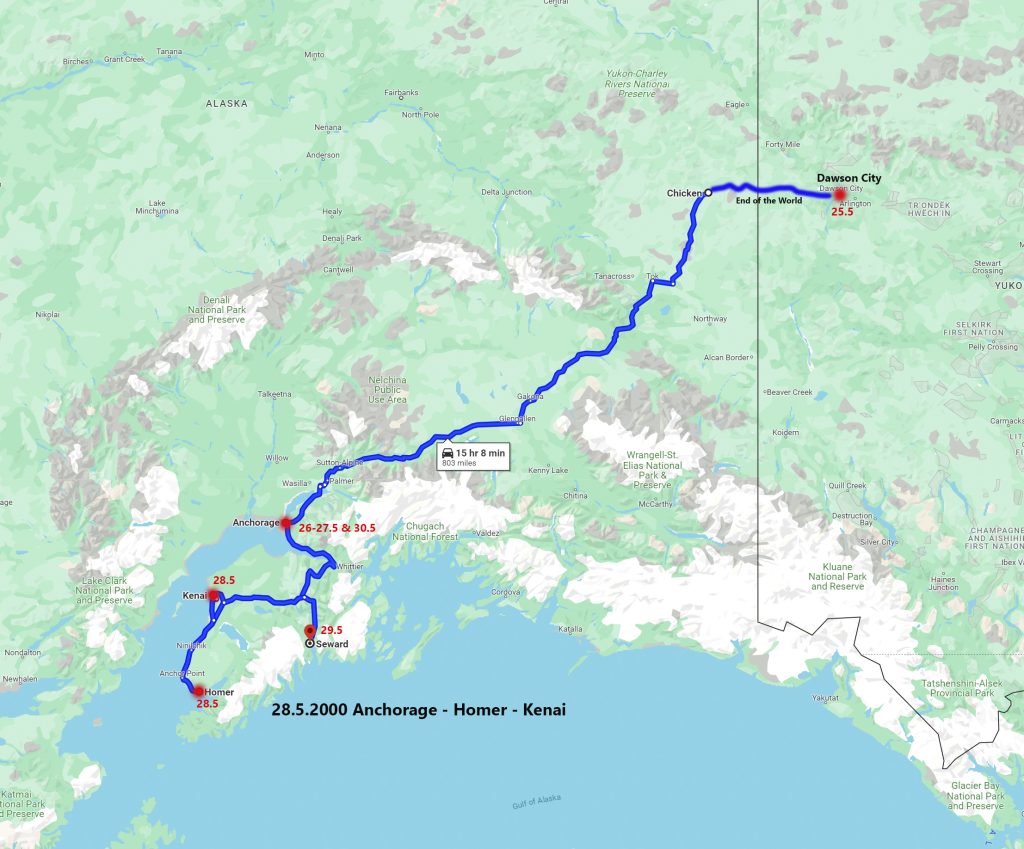 Προορισμός μας ήταν το Homer, το Kenai, η Soldotna και το Seward. Χρειάστηκαν τρεις μέρες για αυτή την περιήγηση και διανύσαμε συνολικά 1.058 χιλιόμετρα.