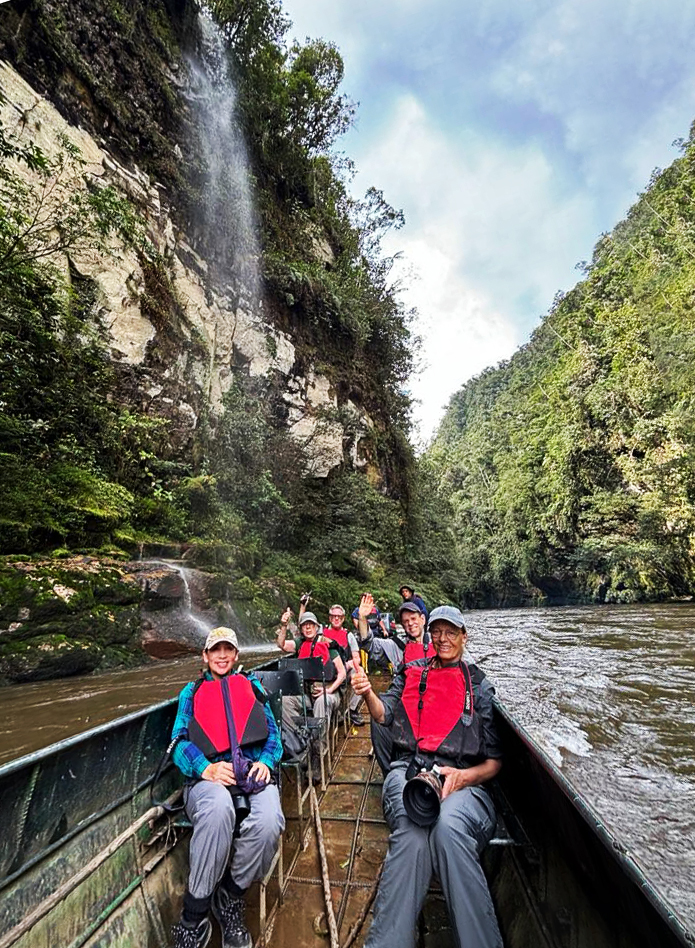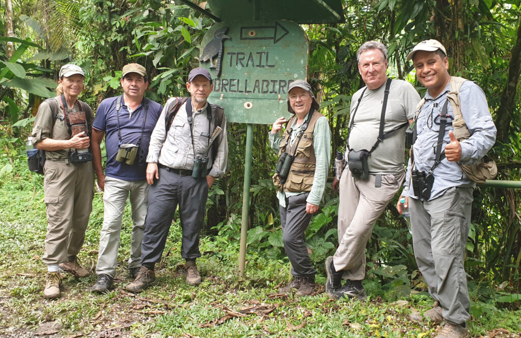 Αναμνηστική φωτογραφία, μόλις είδαμε το umbrella bird. Εχει προστεθεί στην ομάδα και η γυναίκα του Juan Carlos, που μας φωτογραφίζει. Ανάμεσα σε μένα και την Λουκία ο οδηγός του βάν, με το οποίο κυκλοφορούσαμε.