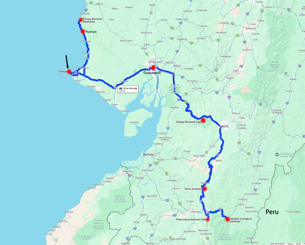 Η πτήση της Iberia ήταν Μαδρίτη-Guyaquill, όμως τελευταία στιγμή την άλλαξαν. Θα προσγειωνόμαστε Quito και θα αλλάζαμε αεροπλάνο. Ομως τα πράγματα μας θα πήγαιναν κατευθείαν Guyaquill.