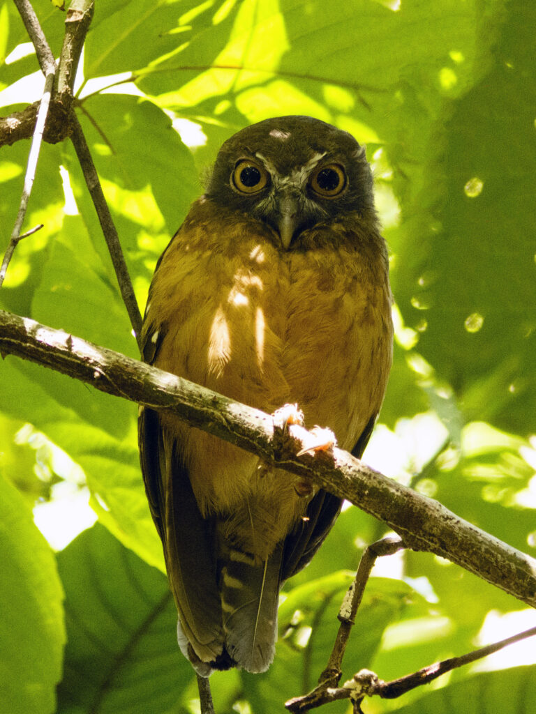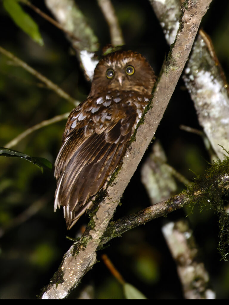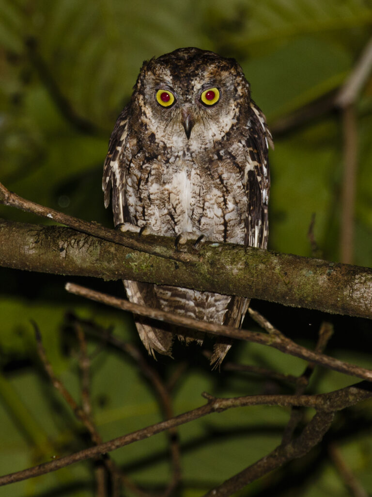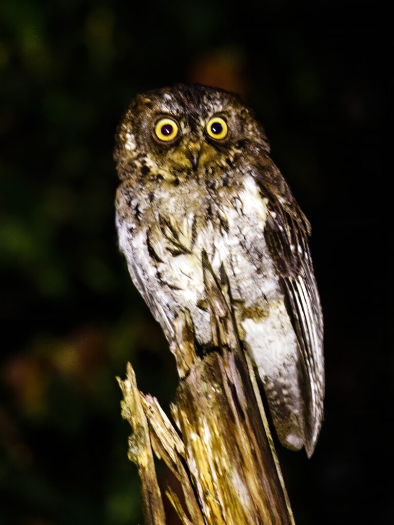 Πριν από την αυγή είδαμε ένα Moluccan Scops Owl στο φως των φακών.
