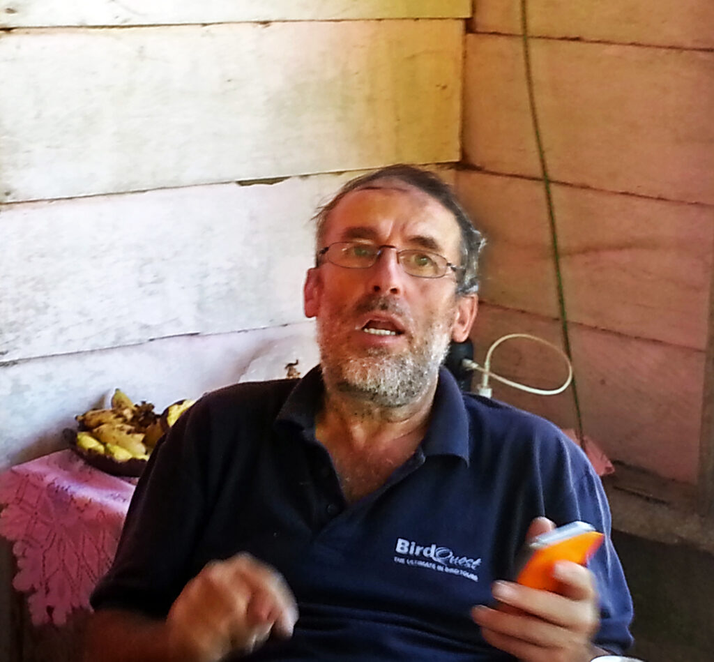 Ο οδηγός μας ο Βέλγος Mark Van Beirs, ενας απο τους top birders του κόσμου, με life list 9300 πουλιά. (Αλλαξε τελευταία αστιγμή με τον Dave Farrow, που είχε ενα πρόβλημα υγείας). Και τέλος ο Βέλγος Dan Heinz, που είχε ενα πρόβλημα το πόδι του και για να μπορεί να συμμετέχει σε τέτοια ταξίδια, δεν έτρωγε τίποτα. Ηταν τόσο ψηλός και αδύνατος, που όταν κινιόταμ έμοιαζε σαν ακρίδα. Και ήταν και καταπληκτικό “παιδί”. Με βοήθησε πολύ σε αυτό το ταξίδι.