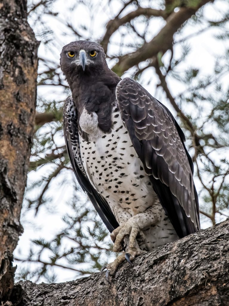 Όταν πετάει τον ξεχωρίζεις εύκολα από πολύ μακρυά, καθώς είναι ο «άνουρος» αετός της Αφρικής (έχει πολύ κοντή ουρά).