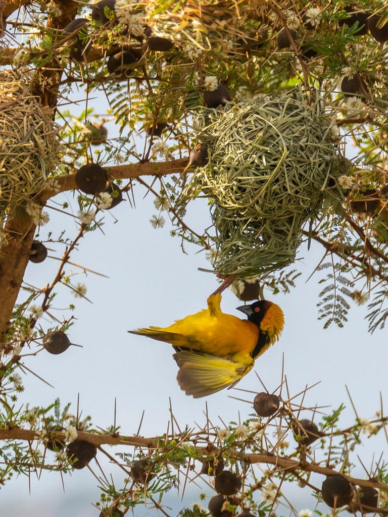 Το δέντρο του έχει τελικά μια λειτουργική φωλιά και 20 παρατημένες φωλιές. Village Weaver αρκετά κοινό πουλί σε όλη την Αφρική.
