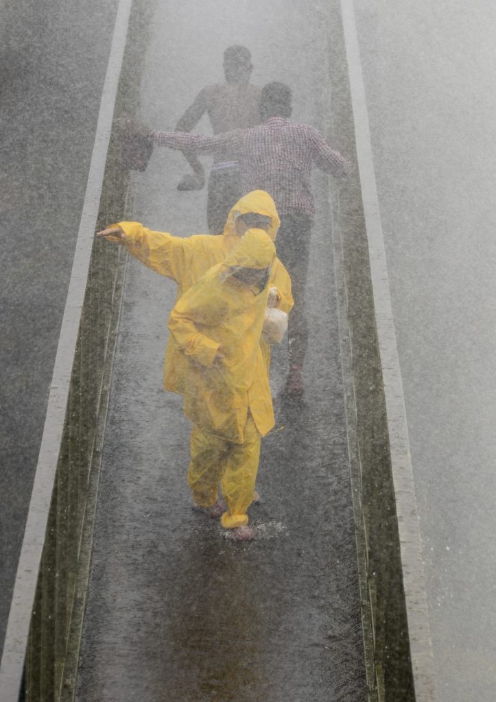 Η ποσότητα του νερού ήταν τέτοια που κάποιοι επισκέπτες διασκέδαζαν κάνοντας… φιγούρες, καθώς τους έλουζε το νερό από τον καταρράκτη.