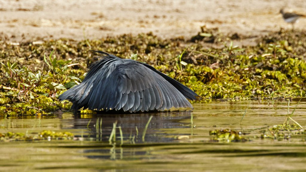 Ξεχώρισα έναν Black Heron, ο οποίος κυνηγούσε με τον χαρακτηριστικό του τρόπο — σχηματίζοντας «ομπρέλα» με τα φτερά του για να σκιάζει το νερό και να μπερδεύει τα ψάρια — καθώς και έναν Southern Carmine Beeeater λίγο πριν την επιστροφή.