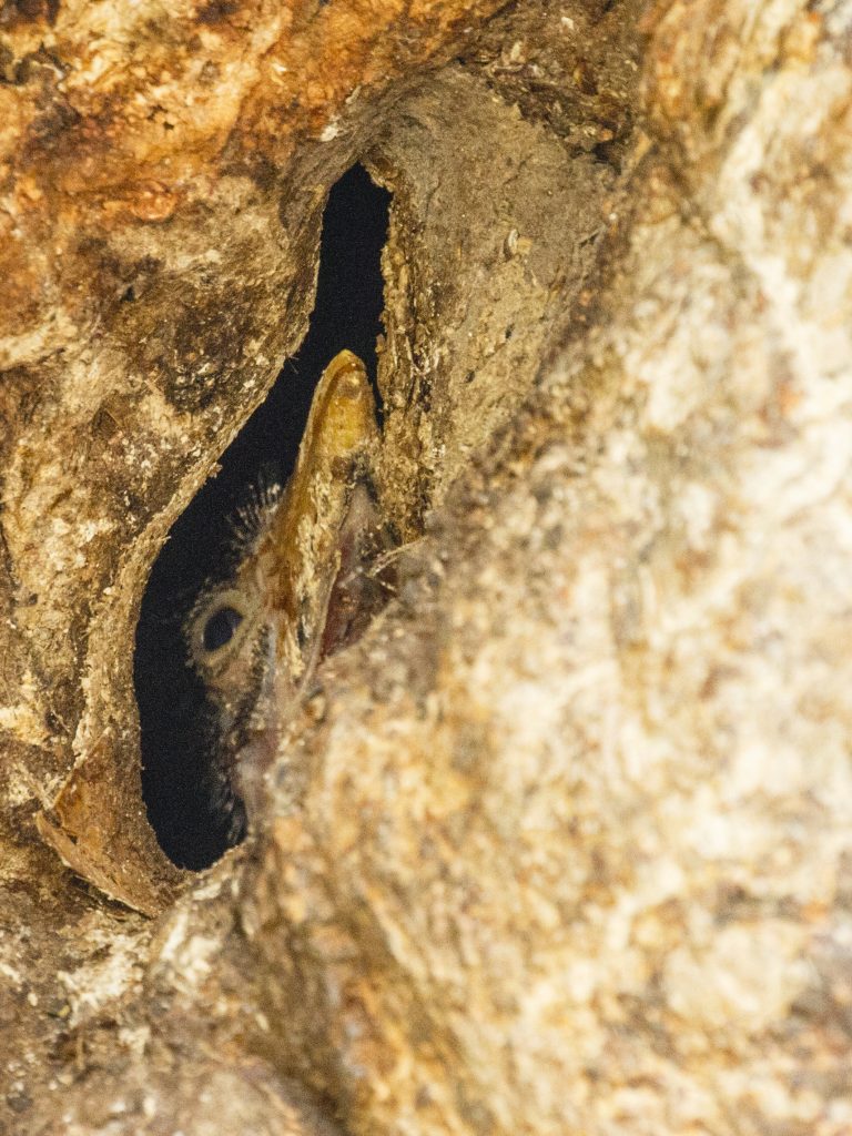 Περιμένοντας τις συνοριακές διατυπώσεις, ο Σαρλ μάς έδειξε μια φωλιά Southern Redbilled Hornbill.
