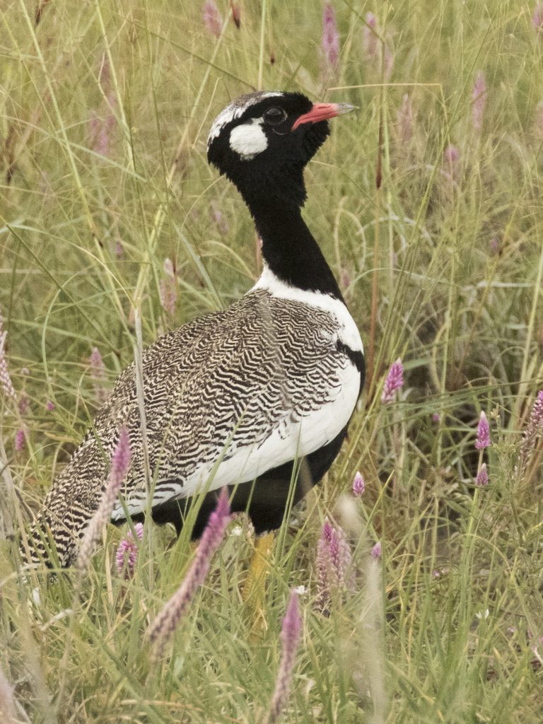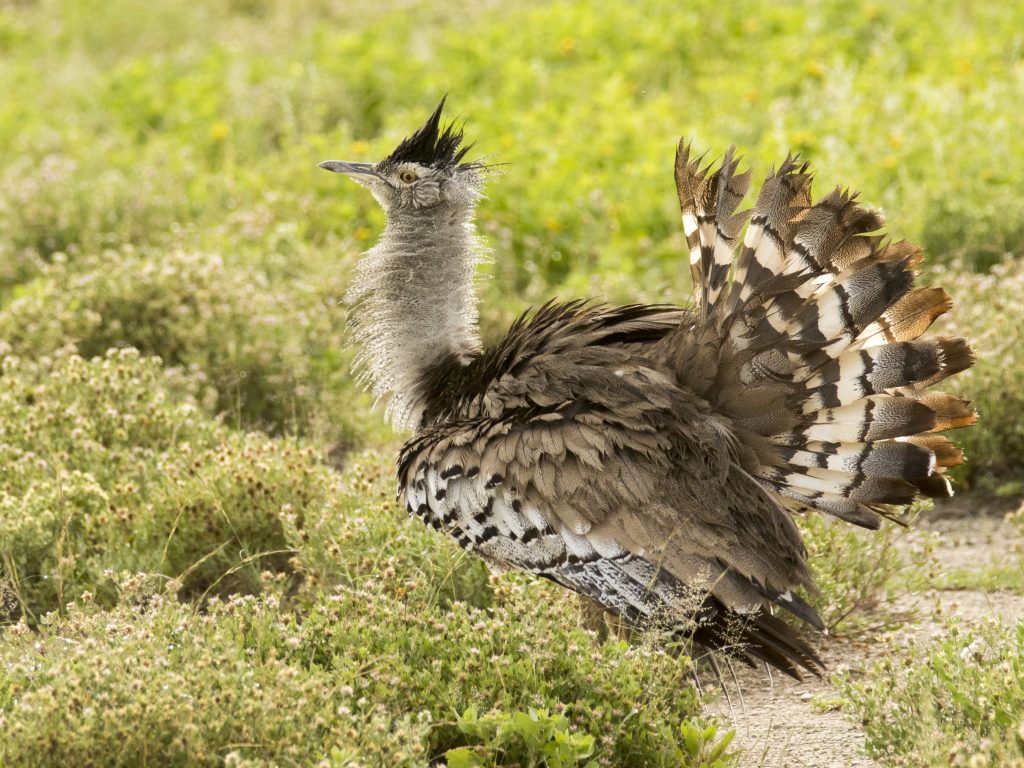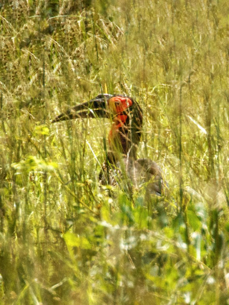 Στο ανοιχτό τοπίο εμφανίστηκε και ένα White-quilled Bustard, ένα πουλί των ξηρών νότιων περιοχών της Αφρικής. Στεκόταν σχεδόν αόρατο μέσα στο γρασίδι μέχρι που πέταξε, αποκαλύπτοντας τις έντονες λευκές πτέρυγες που του δίνουν το όνομά του.