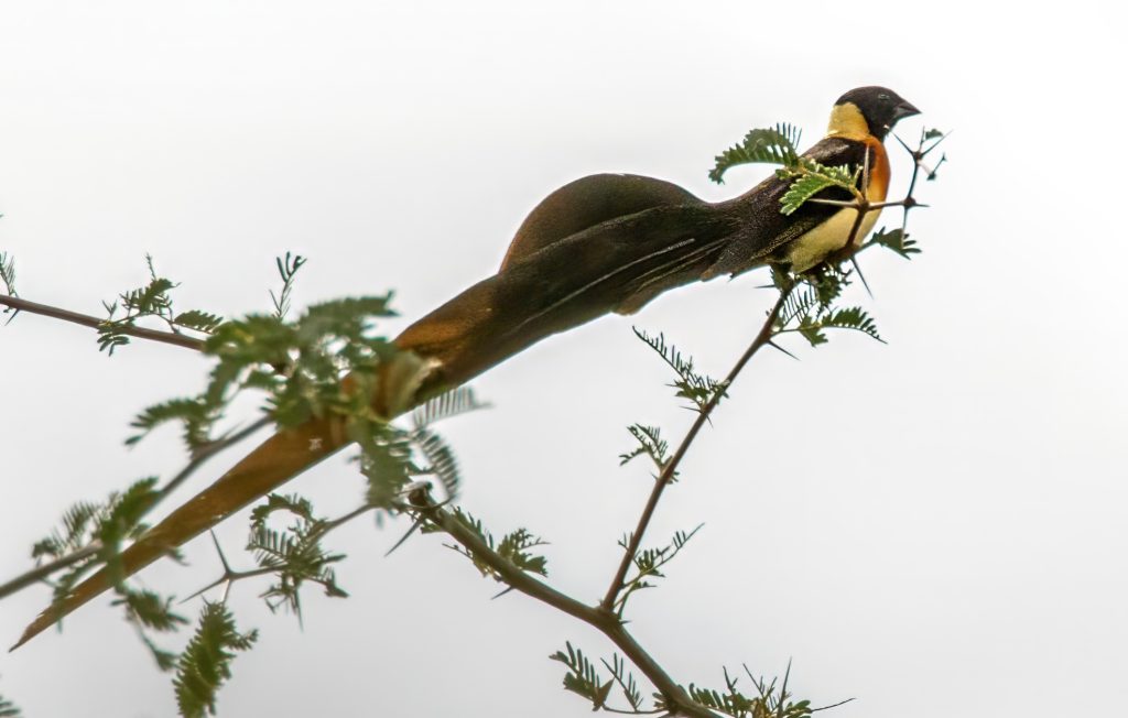 Επιστρέψαμε στο camp το μεσημέρι για φαγητό και λίγη ξεκούραση. Στις 16:00 βγήκαμε ξανά και αυτή τη φορά ξεχώρισα ένα Violet-eared Waxbill, μικρό, ζωηρό και απίστευτα χρωματιστό μέσα στο πράσινο τοπίο.