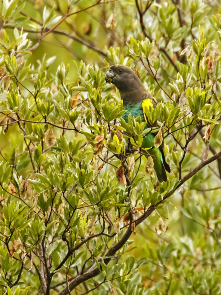 Η τύχη ήταν με το μέρος μας. Μόλις παρκάραμε, εντοπίσαμε τον παπαγάλο στα γειτονικά δέντρα. Τον φωτογραφίσαμε μέσα στο ζεστό απογευματινό φως, κλείνοντας με τον καλύτερο τρόπο μια κουραστική αλλά γεμάτη ημέρα.