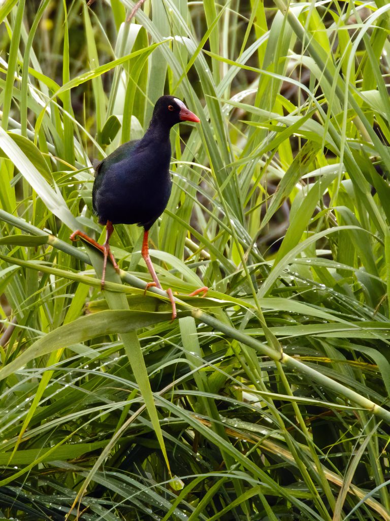 Δεν την είχαμε δει αρχικά, καθώς κρυβόταν στα χόρτα. Όταν όμως η βάρκα πλησίασε περίπου στα 10 μέτρα, άρχισε να φωνάζει έντονα για να απομακρυνθούμε — κάπου εκεί κοντά βρίσκονταν τα μικρά της. Γι’ αυτό άλλωστε οι καλημάνες πήραν το όνομά τους: υπερασπίζονται με πάθος τα μικρά τους.