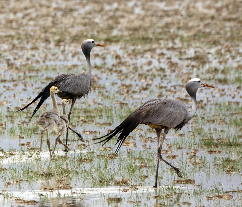 Δεκαπέντε λεπτά αργότερα, ο Σαρλ εντόπισε από μακριά τον σημαντικότερο στόχο της ημέρας: ένα ζευγάρι Blue Crane με τα δύο μικρά τους. Η σκηνή της οικογένειας μέσα στο απέραντο τοπίο ήταν από τις κορυφαίες στιγμές και φωτογραφίες όλου του ταξιδιού.