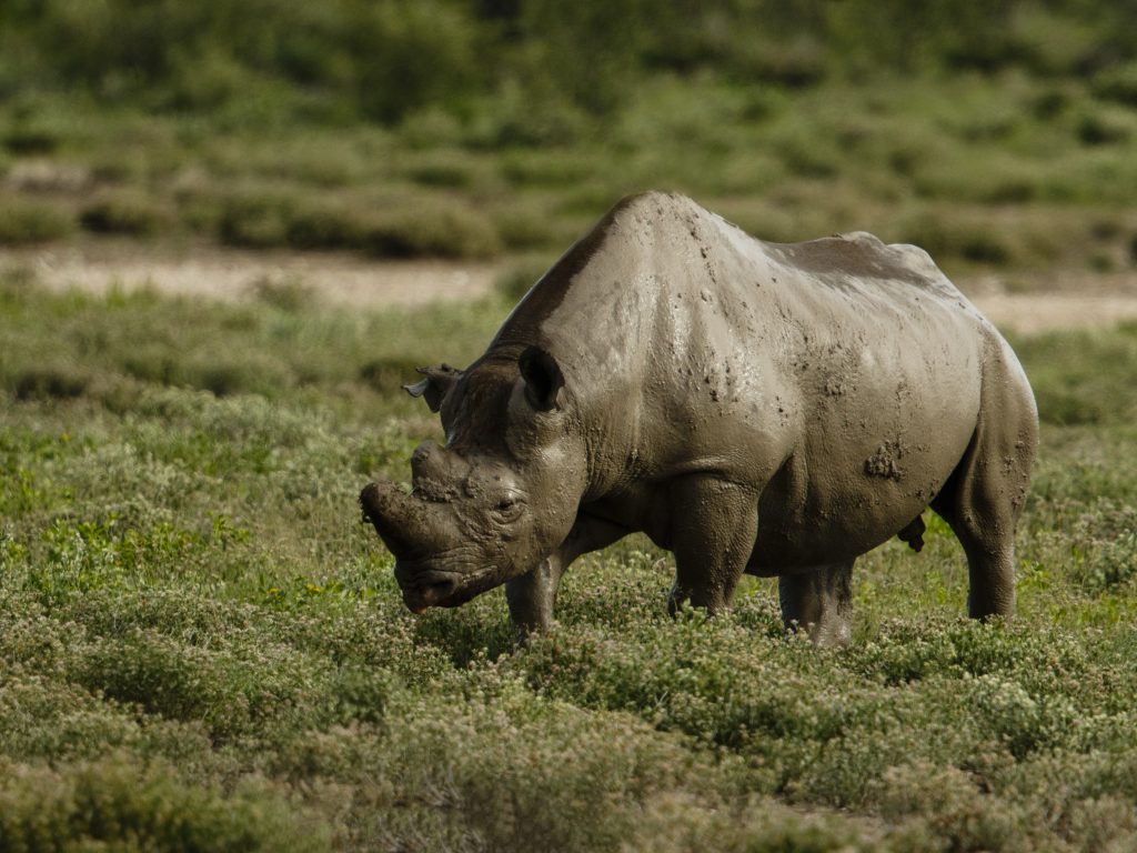 Η πρώτη ενδιαφέρουσα συνάντηση ήταν ένα Kori Bustard που έκανε display. Λίγο αργότερα, γύρω στις 09:00, ήρθε η μεγάλη στιγμή: ένας ρινόκερος εμφανίστηκε μπροστά μας.