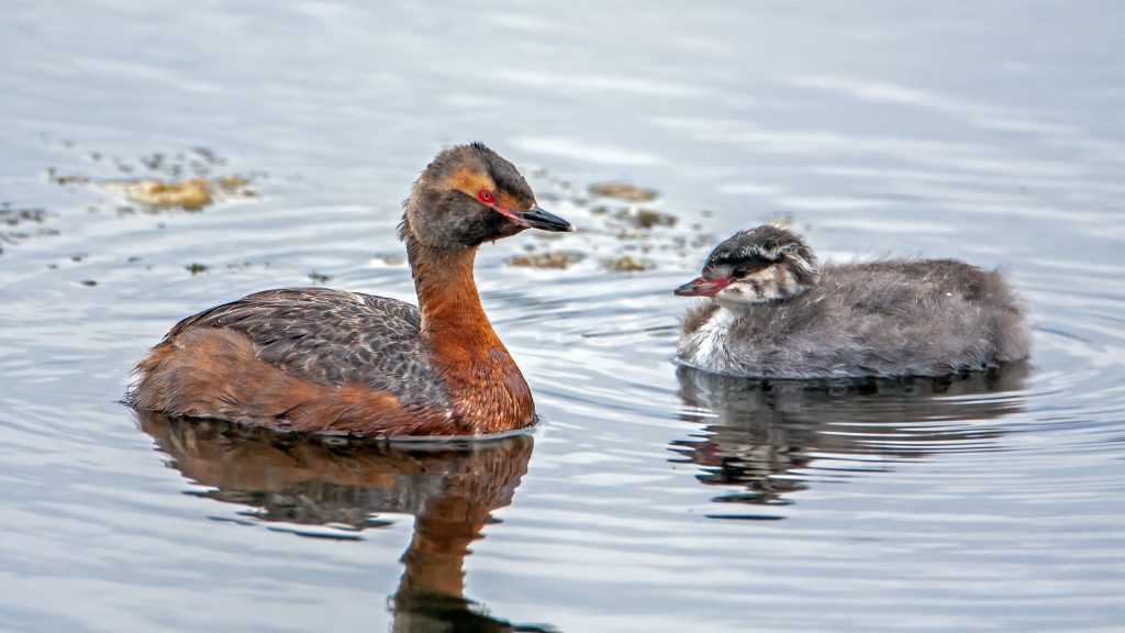 Horned Grebe με το μικρό του