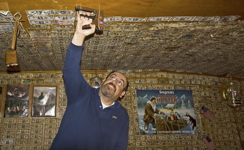 Απολαύσαμε καταπληκτικές εικόνες, όπως αυτή της φωτογραφίας, και σταματήσαμε σε ένα βενζινάδικο με πολύ ιδιαίτερο στυλ. Όλοι οι τοίχοι και το ταβάνι του ήταν καλυμμένα με μονοδόλαρα, που άφηναν οι επισκέπτες γράφοντας το όνομά τους επάνω και καρφώνοντάς τα εκεί, ώστε να τα βρουν στην επόμενη επίσκεψή τους.