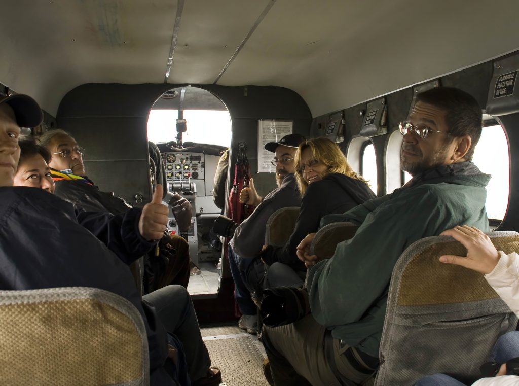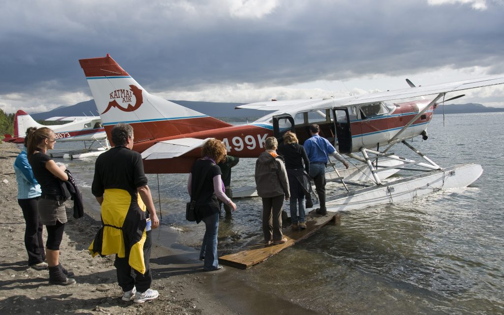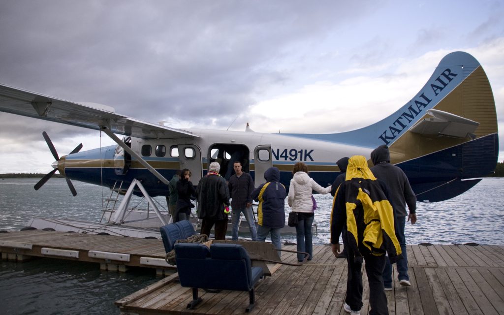 Πήραμε λοιπόν το αεροπλάνο από το Anchorage και, μετά από μία ώρα πτήσης, φτάσαμε στην περιοχή του Katmai. Εκεί μας περίμενε ένα μικρό λεωφορείο, το οποίο μας οδήγησε στο σημείο όπου βρίσκονταν τα υδροπλάνα.